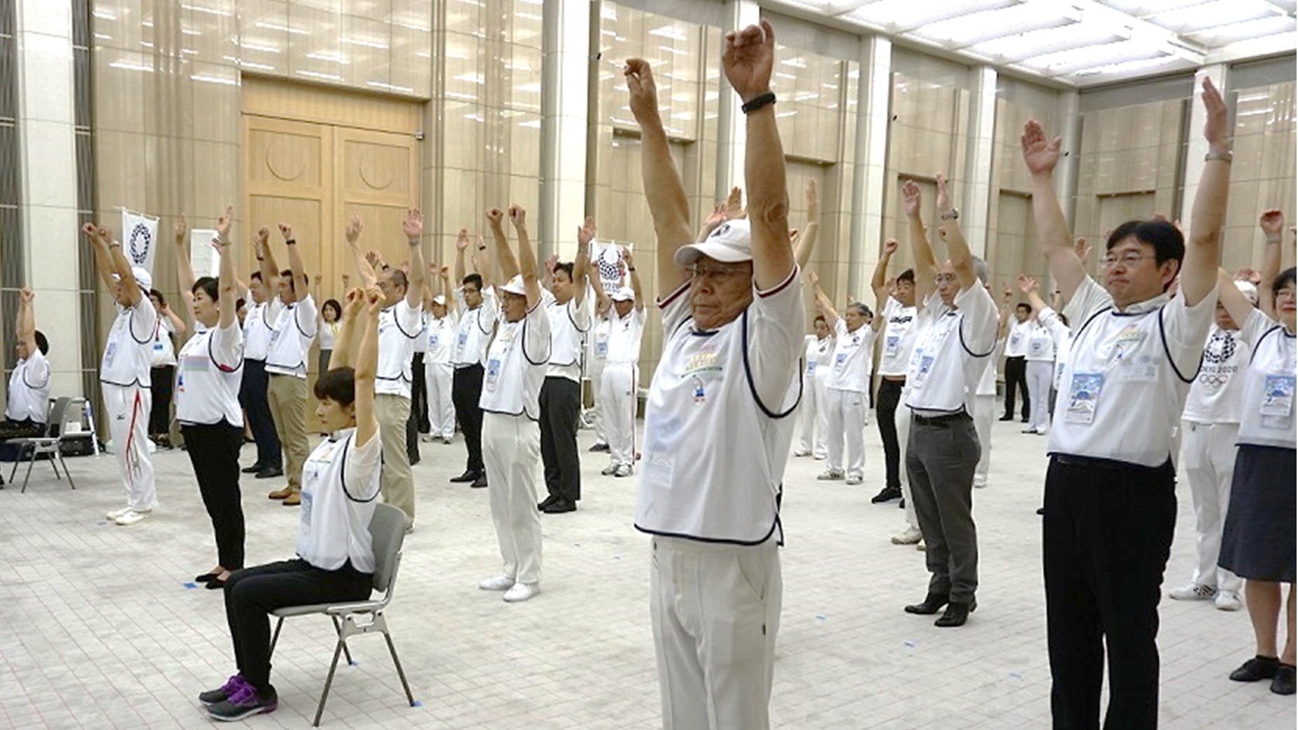 東京都は、都民・国民の健康増進と東京2020大会への気運醸成を目的として、ラジオ体操を活用した「みんなでラジオ体操プロジェクト」を実施しています。東京2020大会の開会式が予定されている7月24日(火)、都庁にてキックオフイベントが開催され、公益財団法人 明治安田厚生事業団は、東京都スポーツ推進企業※として出席しました。