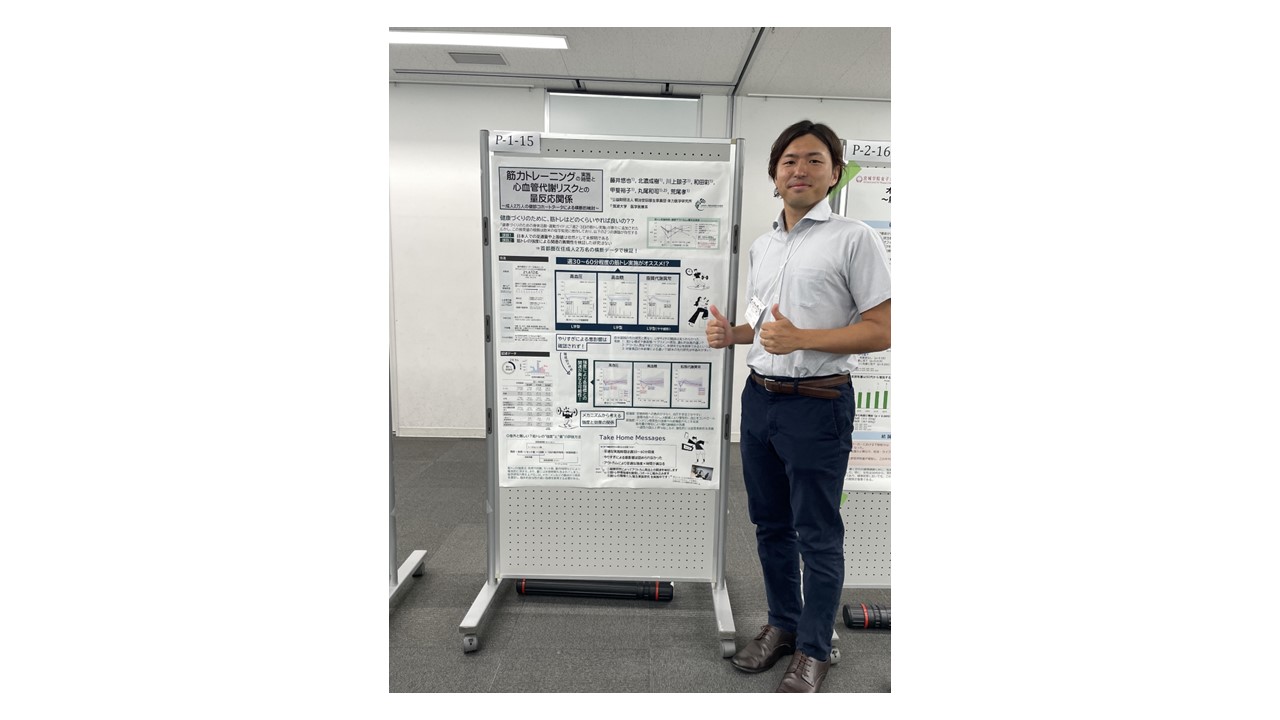 1) 発表演題:筋力トレーニングの実施時間と心血管代謝リスクとの量反応関係~成人2万人の健診コホートデータによる横断的検討~