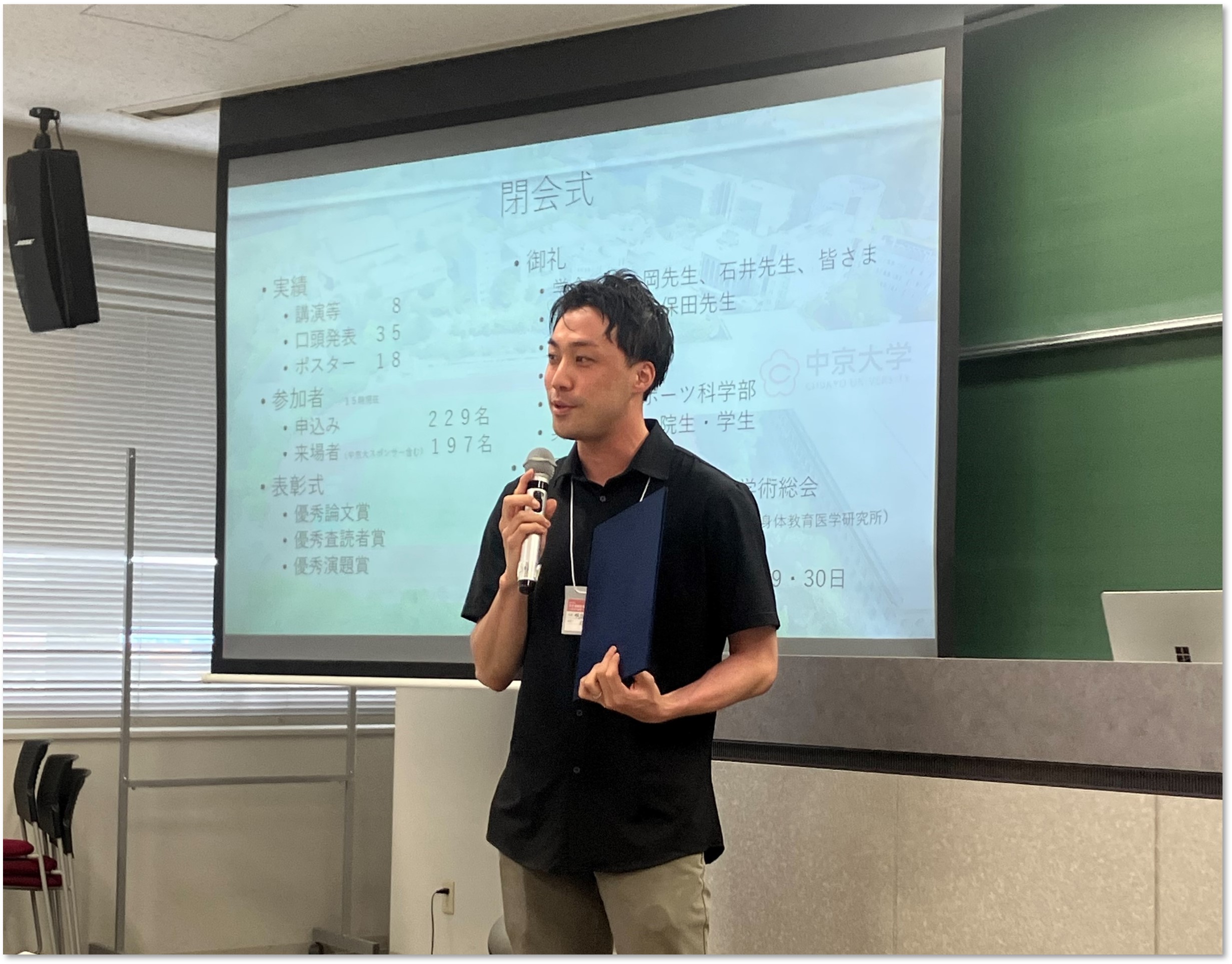 日本運動疫学会は、運動や身体活動に関する疫学や健康づくりを専門にする研究者が一堂に会する学会です。当日は、周りの先生方の発表テーマやプレゼンテーションが素晴らしかったので、正直、受賞できるとは思っていませんでした。そのため、より一層、喜びが大きな受賞となりました。