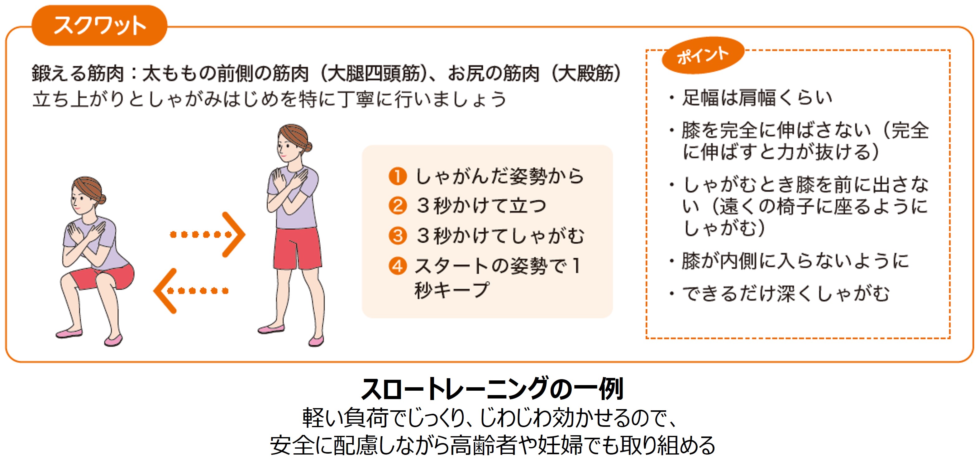 すでに若齢者で有効性が確認されていた「スロートレーニング」を高齢者に適用した場合、効果があるかを調べた研究です。埼玉県三郷市の高齢者が対象で、まずは専用のマシンを使ったスロートレーニングの効果検証に取り組みました。その結果、スロートレーニングは高齢者にも効果的であることが明らかになりました。この後、「だれでも」「いつでも」「どこでも」できるスクワットなどの自体重運動にスロートレーニングを応用したプログラムを考案し、その効果検証も行いました。