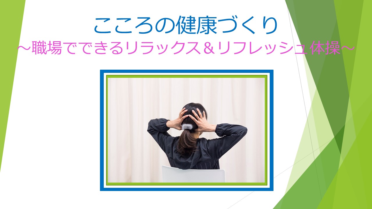 従業員のメンタルヘルス対策に関心を持つ企業の経営者や人事労働者担当者の方々を対象に、こころの健康づくりの方法としてリラックス&リフレッシュ体操を体験していただきました。この体操は、職場の就業時間内でも短時間でできるものです。