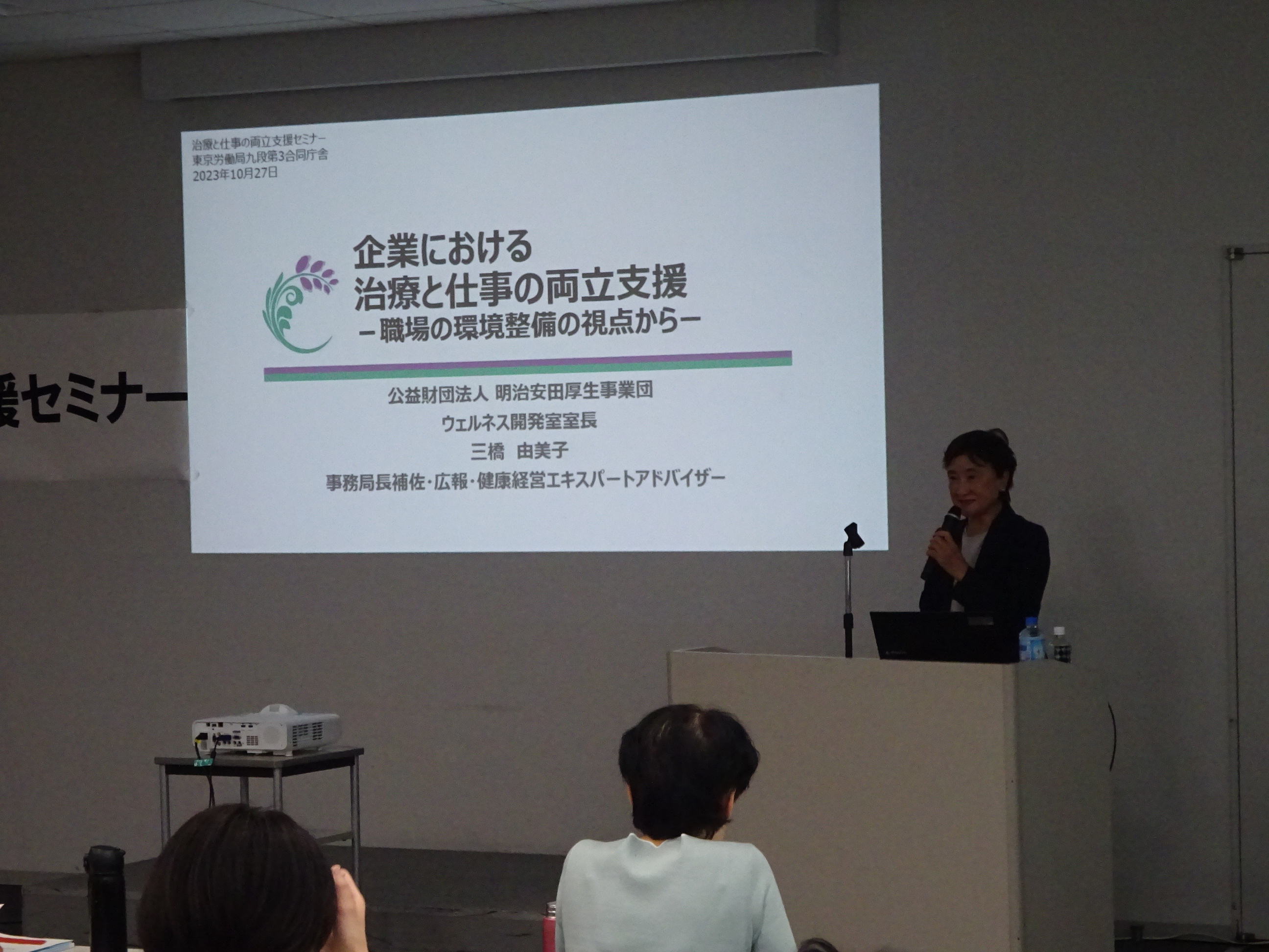 東京労働局が主催する「治療と仕事の両立支援セミナー」が開催され、事業団における両立支援の取り組み事例を紹介するため、講師を務めました。