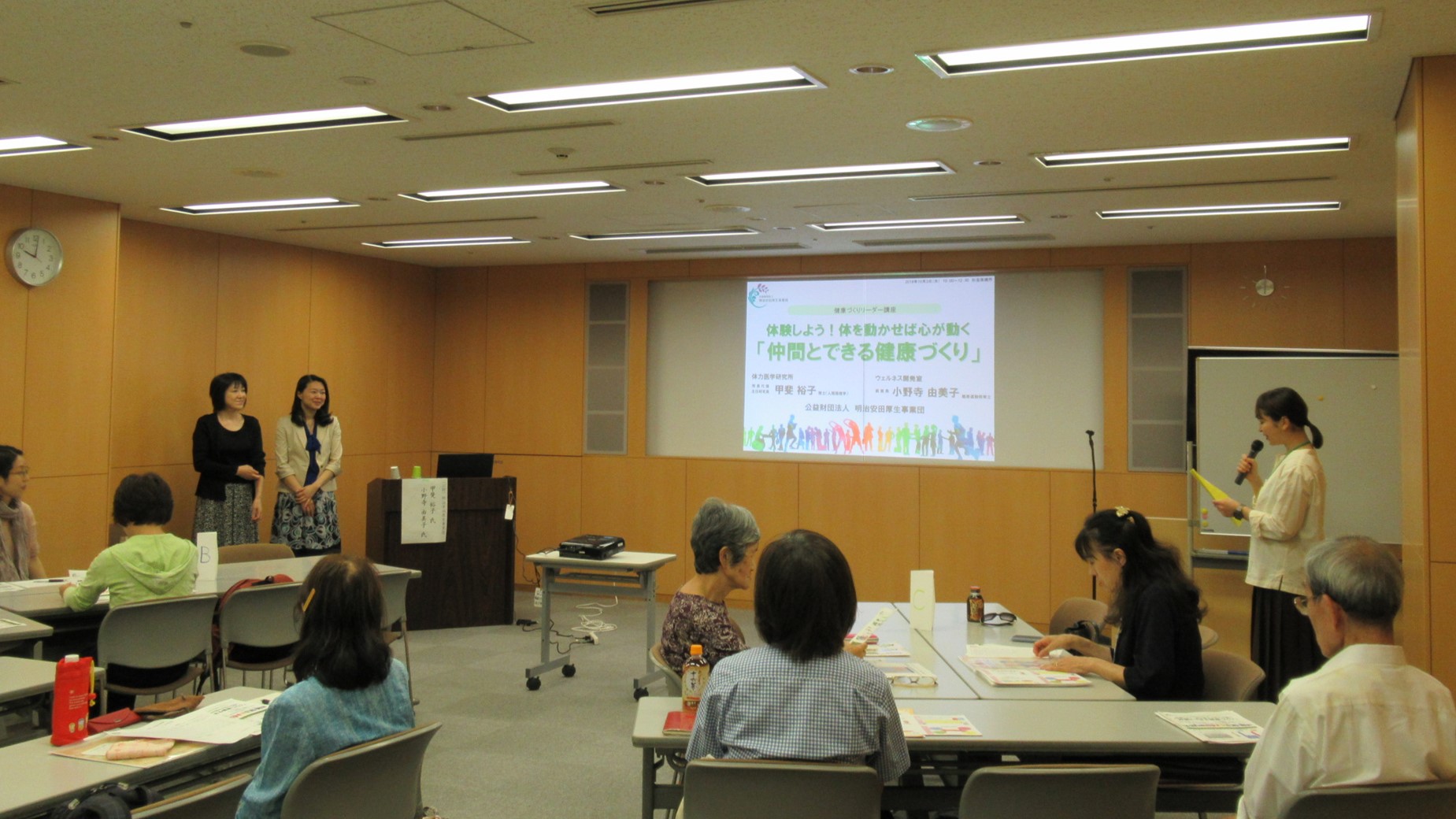 「客観的なデータに基づいた明快なティーチングと、裏付けとなる運動実技との組み合わせという構成が勉強になった」「運動をただ行うだけでなく、どこで、誰と、何をどのくらいすることが大切なのかを知ることができた」「人と人とのつながりがより健康に結びつくことを学べた」とのご感想をいただきました。