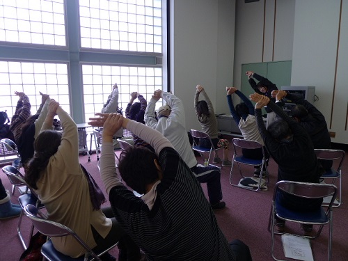 快眠セミナーは、睡眠に対する正しい情報を知っていただくとともに、快眠に役立つように開発した簡単な体操を体験していただきました。
